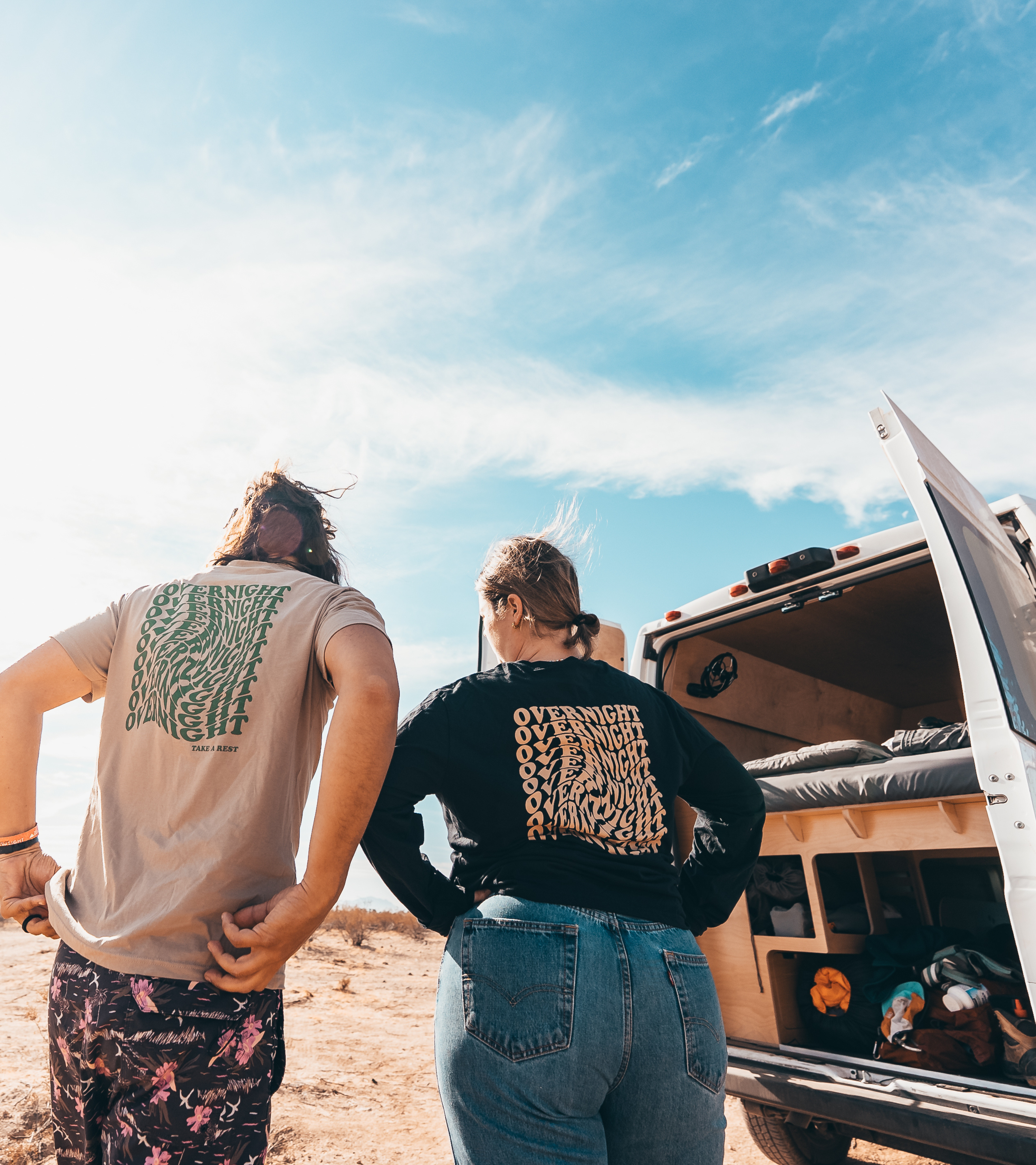 After more than 7 years together and breathtaking adventures all over the world, we've become vanlife pros... (yes, because buying a van a few months after we met to spend months in it during the winter... it's a make it or break it situation). We are also experts in outfit coincidences... we swear, it happens at least 3 times a week that we end up dressed exactly the same without even consulting each other. Maybe that's the real secret to our success, who knows?