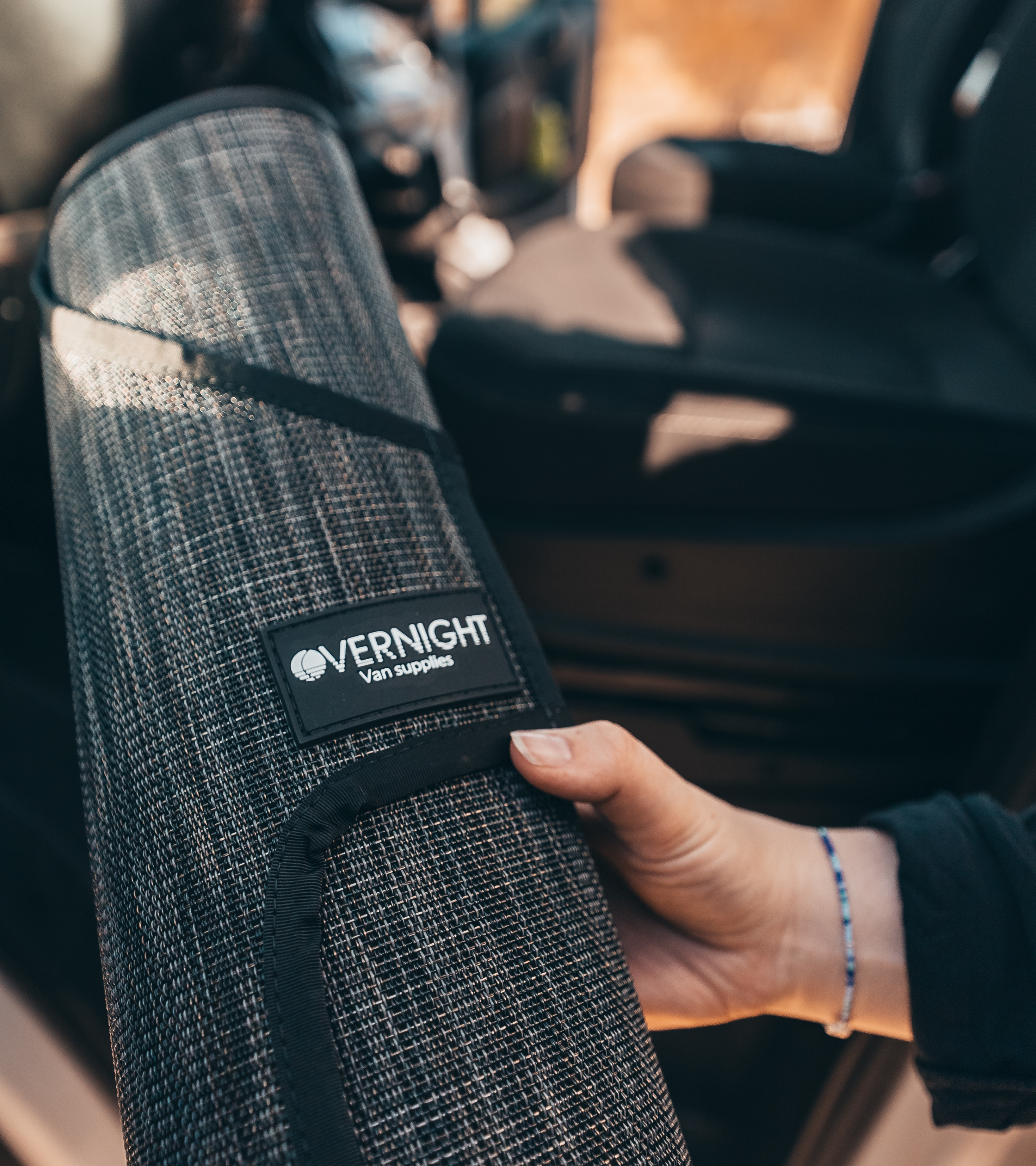 À travers nos voyages, nous avons développé, fabriqué et amélioré ce qui serait bientôt Overnight Van Supplies: des rideaux isolants conçus pour conserver une température agréable dans votre van, autant par temps froid que chaud. Enfin! Pancho pourra faire la sieste en après-midi. Confortablement et en toute intimité.
